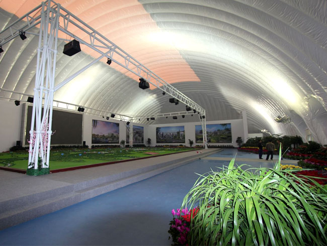 Inflatable building:Inflatable structure is a special form of membrane structure, which uses the difference between internal and external pressure to tense the membrane surface to resist external loads. The inflatable membrane structure can be divided into three types according to its shape: single-layer inflatable membrane structure, double-layer inflatable membrane structure and tubular inflatable membrane structure.