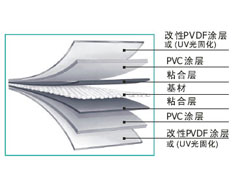 On PVDF coating added special modified additives, can not only improve the self-cleaning properties of membrane material can directly welded again, at the same time, the modified additives and additive synergism in the PVC layer, make the combination of PVDF and PVC coating more strong, not easy to peel, no longer need to coating base layer.
