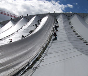 Inspection mainly covers the membrane material for large deformation, membrane material is due to the loss of pretension is flabby, partially torn whether membrane material, membrane material coating whether stripping, cable is loose, the paint is peeling off, etc.