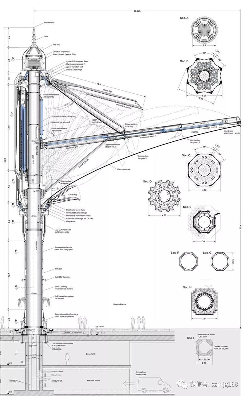 重量約為16噸,高度為40米,他在收起來的時候猶如一個通天立柱。