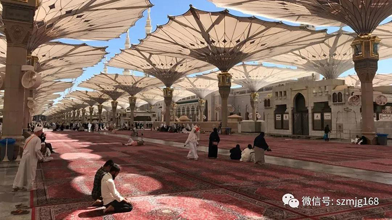 另外在沙特的吉達機場,也設(shè)計了兩把方形遮陽傘。