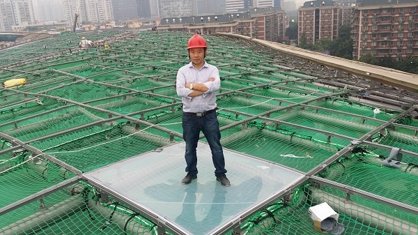 一般建筑用的ETFE膜只有200μm左右,但這薄薄一層透明膜材,其抗壓強(qiáng)度在40MPa以上,具有極強(qiáng)的抗撕裂能力,在不用尖銳物體戳碰的情況下,其物理性能媲美相同厚度規(guī)格的鋼鐵。我們做過試驗(yàn),在充氣后的ETFE氣枕膜能輕松將汽車托起并且膜材完全不受損壞;在單層膜實(shí)際案例中,沒有壓邊的情況下膜面也能正常站人(65kg),并且在人離開后膜材能完全恢復(fù)。