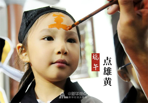 端午節(jié)這一天,古人有飲雄黃酒的習(xí)俗,古語曰“飲了雄黃酒,病魔都遠(yuǎn)走?!比欢?,從現(xiàn)代科學(xué)的角度看,喝雄黃酒有損人的身體健康,危險(xiǎn)性很大。許多地方有用雄黃酒在孩子額頭上書寫“王”字的習(xí)俗,這也表現(xiàn)出人們對虎的崇拜,一借雄黃以驅(qū)毒,二借猛虎以鎮(zhèn)邪,三則表達(dá)對孩子的祝福。
