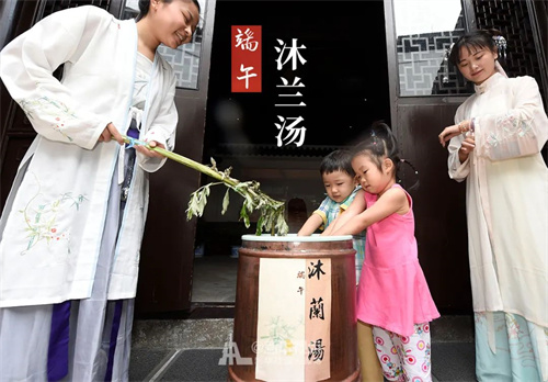 《大戴禮記》中說:“五月五日,蓄蘭為沐浴?!碑?dāng)時(shí)的蘭不是現(xiàn)在的蘭花,而是菊科的佩蘭,有香氣,可煎水沐浴。時(shí)至今日,在我國廣東、湖南、廣西等地,人們用艾、蒲、鳳仙、桃葉等煮成藥水洗浴,據(jù)說可以治皮膚病,去邪氣。