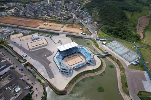 寧波半邊山沙灘排球中心為亞運會沙灘排球比賽場地及訓(xùn)練場地,位于寧波市象山縣半邊山景區(qū)內(nèi),占地面積約6.4萬方,含比賽場地2片,熱身場地2片,訓(xùn)練場地3片,大約可容納3000名觀眾觀賽,觀賽區(qū)有一處顯眼的白色膜結(jié)構(gòu)看臺。