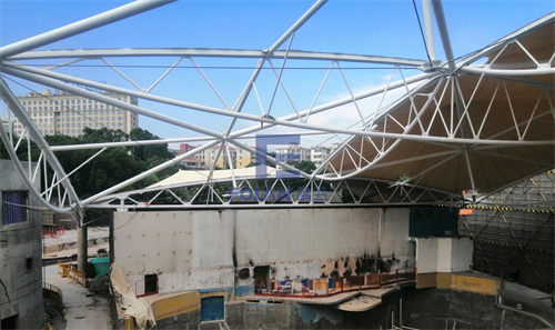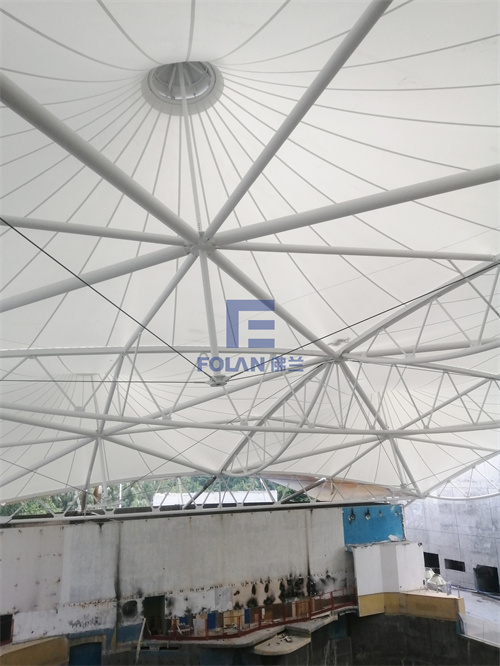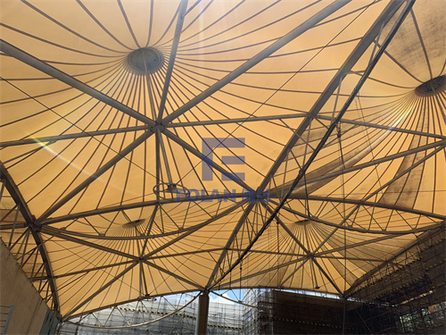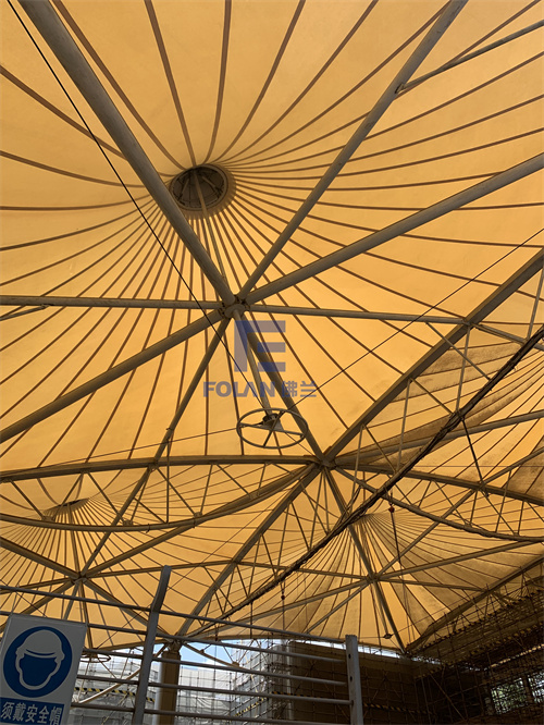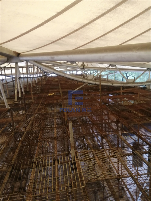 該項目面積約2400平方米,主要施工內容包括原有舊鋼結構的除銹翻新、舊膜拆除和新膜的制作、加工、安裝。