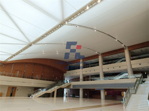 在虎門高鐵站項(xiàng)目中,佛蘭空間采用PTFE內(nèi)膜作為室內(nèi)吊頂材料。這種材料具有優(yōu)異的吸音和透光性能,能夠?yàn)楦哞F站營造明亮、舒適的旅途空間。