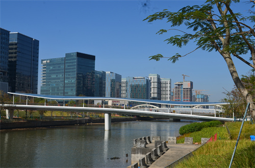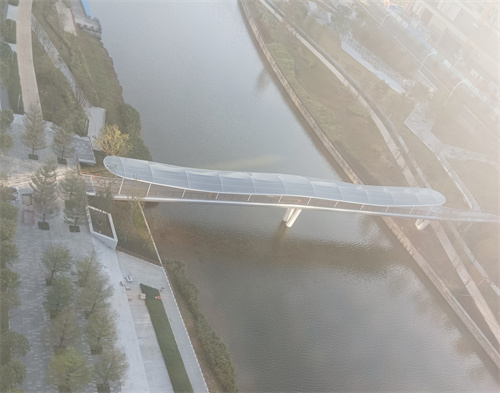 前段時間,佛蘭空間在深圳新竣工了一座獨特的ETFE人行天橋。這座天橋以輕盈的ETFE暗透明鍍點膜材鋪設(shè)于潔白的鋼骨架之上,整體結(jié)構(gòu)輕盈飄逸,橫亙于河流之上,不僅為市民提供了更加舒適、美觀、安全的通行環(huán)境,還為城市增添了一道亮麗的風景線。