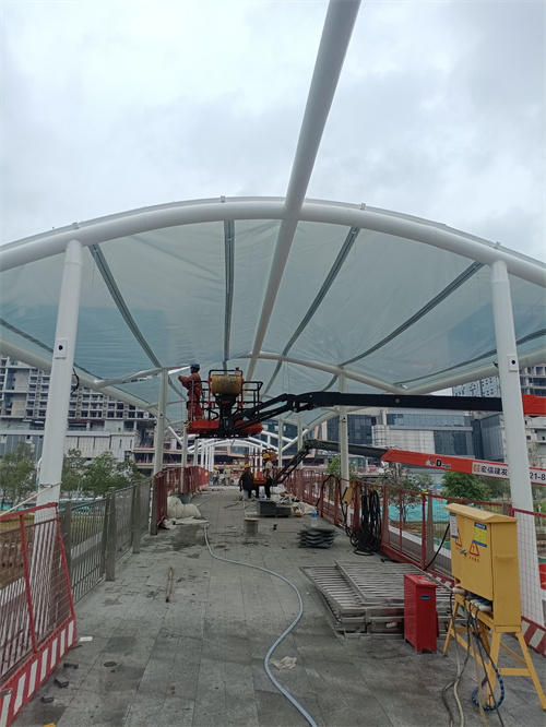 在施工過程中,佛蘭空間項目施工人員認真對待每一道施工工序,從鋼構(gòu)的打磨除銹,噴漆,預(yù)拼裝和吊裝,再到膜材的吊裝和張拉固定,每個環(huán)節(jié)都一絲不茍,嚴格按照設(shè)計要求和相關(guān)標準進行施工,確保了工程質(zhì)量和進度。