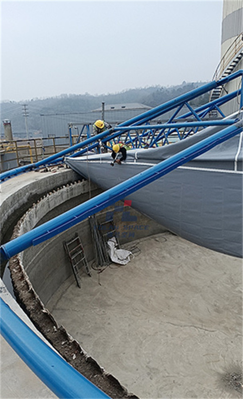 為煥發(fā)污水池的新生,九江污水池的管理者們決定進行一場徹底的改造。他們拆除了陳舊的鋼結(jié)構(gòu)棚子,將半橋升級為全橋,并選擇一種創(chuàng)新的方案——污水池反吊膜加蓋。