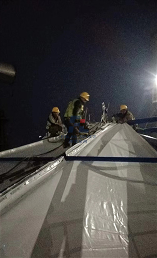 如今,這個改造后的污水池已經(jīng)投入使用。膜材反吊設(shè)計不僅成功封鎖了惡臭氣體,還保護鋼構(gòu)免受腐蝕之害。我深信,這片土地上的空氣將會更加清新,天空也將更加湛藍。