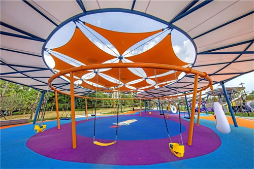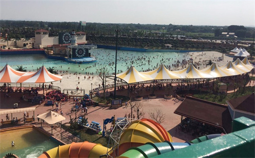 如今,很多主題樂園里的游戲場所,都會在游樂設(shè)施的上方設(shè)置膜結(jié)構(gòu)頂篷,既可起到遮陽的作用,又能增強游樂設(shè)施的視覺效果。下面這2個主題公園和水上樂園,就恰如其分地運用膜結(jié)構(gòu)發(fā)揮其遮陽擋雨效果。