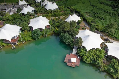 膜結(jié)構(gòu)憑其輕巧獨特的造型,已廣泛用于休閑旅游場景,比如常見的膜結(jié)構(gòu)大門入口,過道、景觀小品、停車棚,帳篷酒店,餐廳、表演舞臺、游戲場所等,這些膜結(jié)構(gòu)不僅為游客提供休息、觀景的舒適場所,還能自成一景,供游客欣賞。