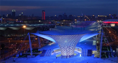 世博軸是世博會園區(qū)內最大的單體建筑,全長1045米,寬約110米,氣勢磅礴,是世博會期間重要的人流通道和景觀帶。