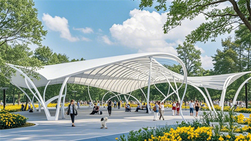 在悠閑自得的野餐時光里,遮陽膜結(jié)構(gòu)不僅提供了必要的遮陽避雨功能,更成為了社交互動的絕佳場所。家人朋友圍坐膜結(jié)構(gòu)建筑下方,享受美食,暢談笑語,春日的美好在此刻凝聚。