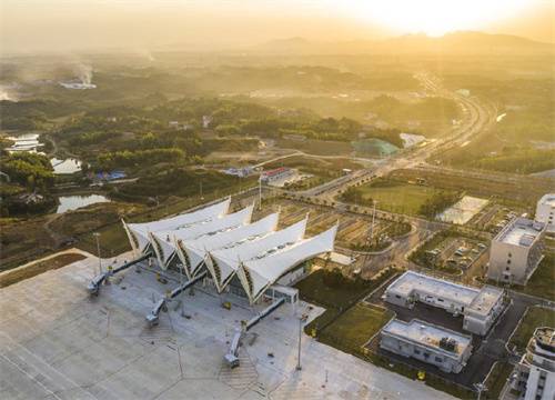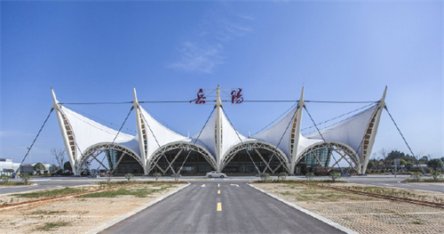航站樓創(chuàng)新性地采用PTFE拉膜結(jié)構(gòu)體系創(chuàng)造出具有獨(dú)一無(wú)二的現(xiàn)代航空港造型,鋼結(jié)構(gòu)梭柱與白色拉膜的組合將岳陽(yáng)的傳統(tǒng)景點(diǎn)——瀟湘八景之一:“遠(yuǎn)浦歸帆”的意境以現(xiàn)代的方式重新演繹,體現(xiàn)濃郁的現(xiàn)代氣息的同時(shí)又延續(xù)了傳統(tǒng)地域文化。