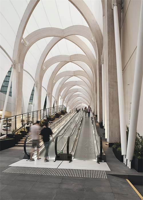 作為一條寧?kù)o的走廊,TheLink長(zhǎng)110米、高達(dá)15米,旨在將南半球最大的查德斯頓購(gòu)物中心與新開(kāi)業(yè)的美憬閣索菲特酒店連接起來(lái),以此模糊該中心休閑、商業(yè)、零售區(qū)域以及內(nèi)外部空間之間的界限。