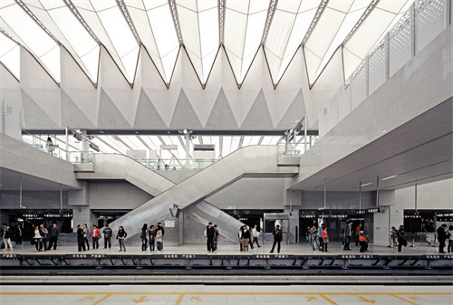 由于PTFE膜材料的半透光特性,白天的車站內(nèi)可以透射進(jìn)柔和而充分的自然光線,無(wú)須人工照明;到了夜晚,車站內(nèi)的燈光透射出去,使得車站就像兩條發(fā)光的紙燈籠,乘坐地鐵回家的人遠(yuǎn)遠(yuǎn)就可以看到。