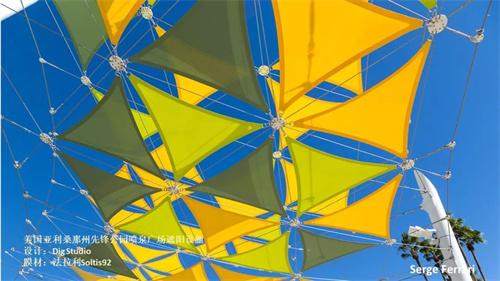 網(wǎng)格膜,作為近年來興起的膜材料新寵,不僅能用于室內(nèi)遮陽吸音,還能用于外立面裝飾及廣場遮陽。