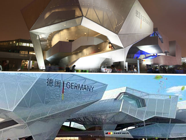 以我們都很熟悉的上海世博會(huì)幾個(gè)場館為例,展廳主體采用舊廠房或廢棄集裝箱改造,外觀則通過鋼架包裹膜結(jié)構(gòu)完成整體施工,既節(jié)約了工期,又一改廢舊廠房古板、沉悶的外觀造型。如下圖,就是幾個(gè)世博園里的展館: