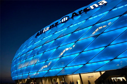 ◆ 慕尼黑安聯(lián)球場:動態(tài)變色氣枕外立面