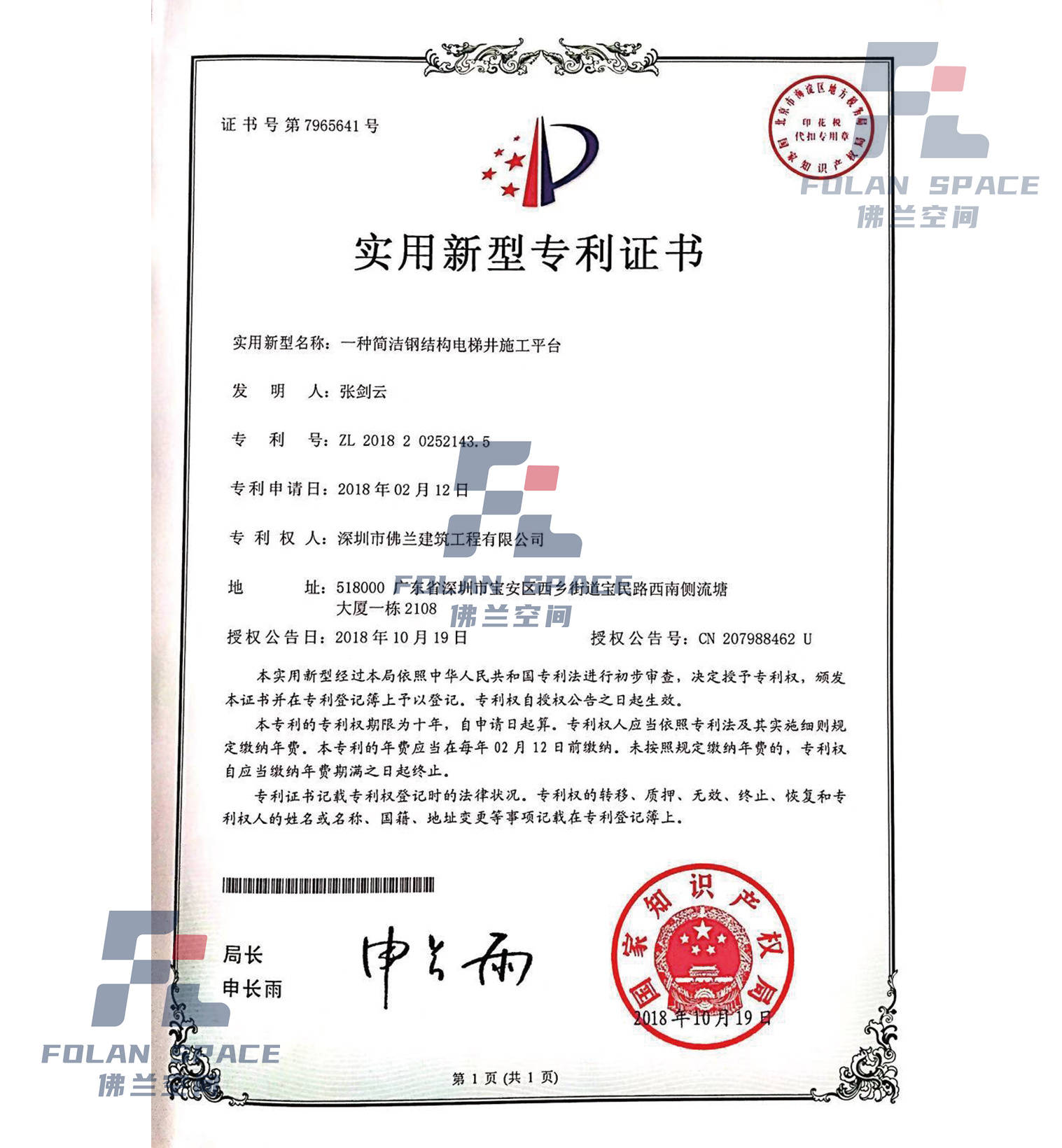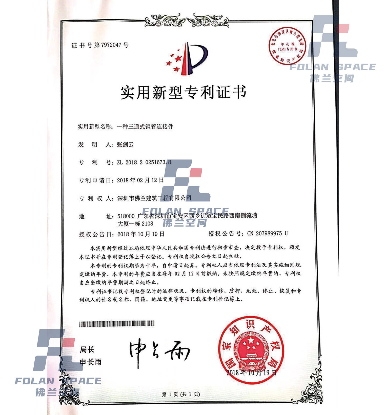 實用新型專利證書