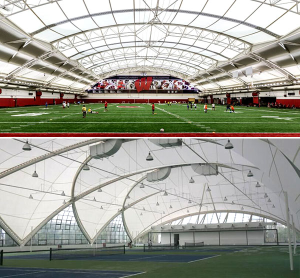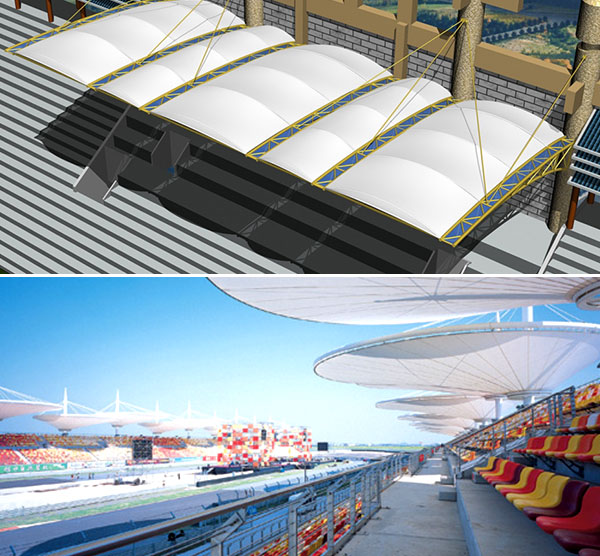 體育場館跨度大,屋頂結(jié)構(gòu)在整個建筑設(shè)計中占重要地位,對建筑造型起決定性的作用。膜結(jié)構(gòu)作為新型建筑,與傳統(tǒng)結(jié)構(gòu)相比,優(yōu)勢非常明顯,大家熟悉和深刻的為“2008年北京奧運會的國家體育場(鳥巢)、國家大劇院、國家游泳中心(水立方)”。