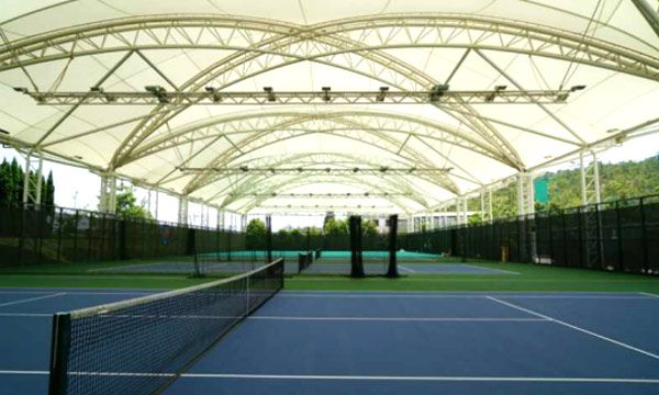 ⑦自潔性。膜材的表面涂層、特別是其中的聚四氟乙烯(PTFE)涂層,具有良好的非粘著性,大氣中的灰塵及臟物不易附著與滲透,而且其表面的灰塵被雨水沖刷干凈,常年使用后仍能保持外觀的潔凈及室內(nèi)的美觀。