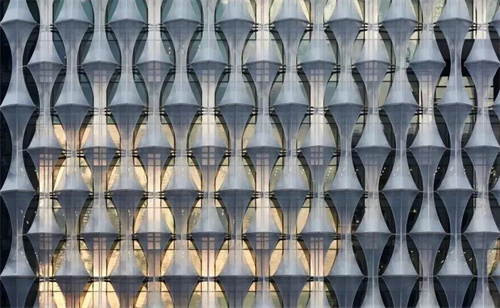 ETFE膜結(jié)構(gòu)外墻由四層ETFE制成,共有57個氣枕,使用定制的白色墨水打印圖案和氣動裝置來控制進入建筑物的透光量,節(jié)約成本的同時,還能增加建筑物的舒適度。