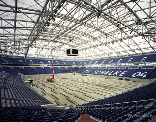 費爾廷斯競技場,原名奧夫沙爾克體育場(ArenaAufSchalke),它由沙爾克04足球俱樂部自籌資金建造,1998年開始建設(shè),于2001年8月13日正式揭幕。