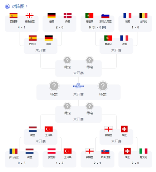 至此,本屆歐洲杯八強(qiáng)全部產(chǎn)生,1/4決賽對陣也已出爐,具體賽程如下(北京時間):